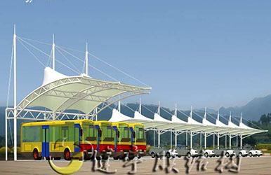 膜結構車棚,是以建筑織物,即膜材料為張拉主體,與支撐構件或拉索共同組成的結構體系,它以其新穎獨特的建筑造型,良好的受力特點——成為大跨度空間結構的主要形式之一。膜材料是指聚酯纖維基布或PVDF、PVF、PTFE等不同的表面涂層,配以優質的PVC組成的具有穩定的形態,并可承受一定載荷的建筑紡織品。它的壽命因不同的表面涂層而異,一般可達成10-20年。